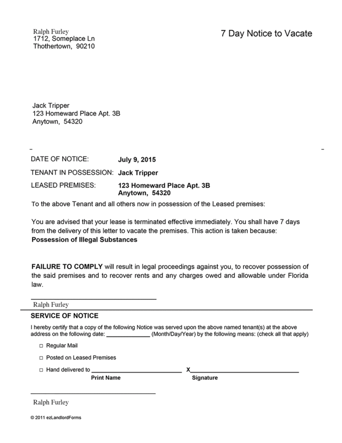 Florida 7 Day Notice To Vacate Ezlandlordforms